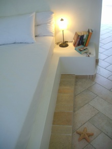 Traditional style, smooth blue and yellow ochre colours on the walls and the minimal decoration give a nice relaxing atmosphere for the guests of Anemomilos Studios.