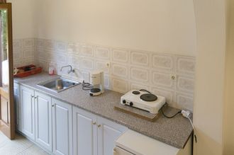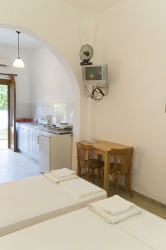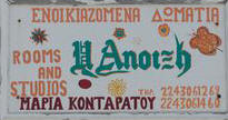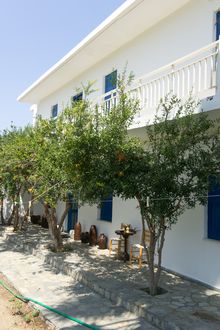 Furnished rooms with bath and fridge in the midst of a large, flourishing orchard, with the bus stop just at the gate. The lovely beach of Livadi is just five minutes away on foot. Guests may relax in the cool shade of the orchard. Fresh goat's milk is served at breakfast along with other traditional treats in a warm family enviroment. We await you.