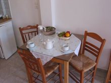 Kaliopi Petrinoli welcomes you to a new complex of eight, fully furnished, comfortable studios. The studios are designed to accommodate two or three people and all have their own bathroom, air condition, TV and telephone as well as a fully equipped kitchen. For your convenience so that you can enjoy your holidays without the worry of doing laundry she has also included a mini washing machine in each studio.