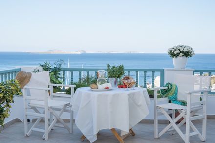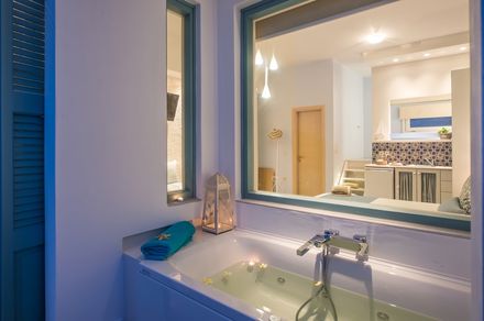 10 luxurious studios for 2 or 3 persons with Flat-screen TV, WiFi, A/C, kitchenette with coffee/tea making facilities and mini fridge, safe deposit box, private bathroom with shower, bath amenities and hair-dryer, separate private balconies with a magnificent sea and city’s Venetian Castle view, pleasant surroundings and, daily housekeeping, outdoor Jacuzzi (Deluxe Studio)