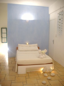Traditional style, smooth blue and yellow ochre colours on the walls and the minimal decoration give a nice relaxing atmosphere for the guests of Anemomilos Studios.