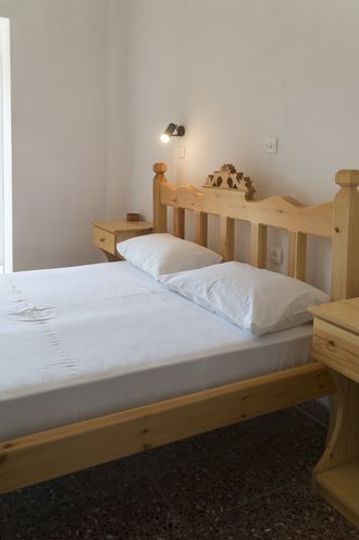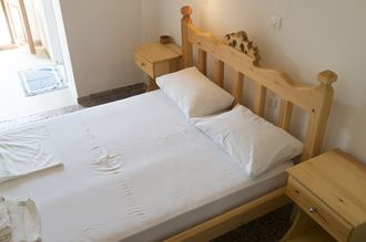 Furnished rooms with bath and fridge in the midst of a large, flourishing orchard, with the bus stop just at the gate. The lovely beach of Livadi is just five minutes away on foot. Guests may relax in the cool shade of the orchard. Fresh goat's milk is served at breakfast along with other traditional treats in a warm family enviroment. We await you.