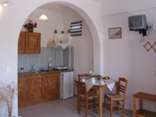 Kaliopi Petrinoli welcomes you to a new complex of eight, fully furnished, comfortable studios. The studios are designed to accommodate two or three people and all have their own bathroom, air condition, TV and telephone as well as a fully equipped kitchen. For your convenience so that you can enjoy your holidays without the worry of doing laundry she has also included a mini washing machine in each studio.