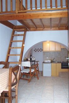 The studios on the ground floor are traditional, in that the double bed is situated on a raised wooden platform reached by stairs, this is locally known as "sefas". These studios also offer nice verandas (no sea view).