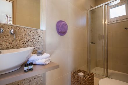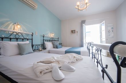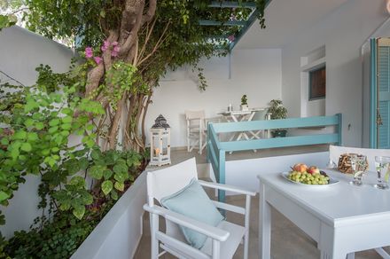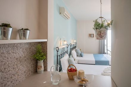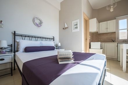 10 luxurious studios for 2 or 3 persons with Flat-screen TV, WiFi, A/C, kitchenette with coffee/tea making facilities and mini fridge, safe deposit box, private bathroom with shower, bath amenities and hair-dryer, separate private balconies with a magnificent sea and city’s Venetian Castle view, pleasant surroundings and, daily housekeeping, outdoor Jacuzzi (Deluxe Studio)