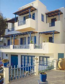An up-to-date and well organized complex by the sea with comfortable rooms and sunny verandas. Its fully furnished with imagination and care to meet every demand. Guests may enjoy the view of the vast blue Aegean sea from the traditional blue balconies with their shady trellises. The beach is just 100 m away.